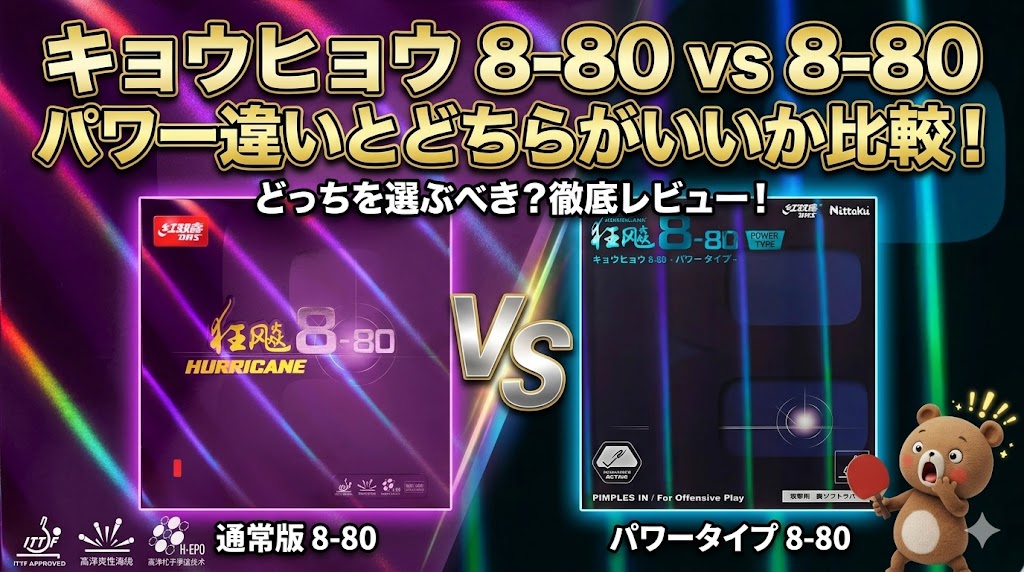 画像リンク先 Amazon 卓球大好き卓くまです! これまでのキョウヒョウは硬くて、バック面で使いこなせる選手はほんの一握りでした。 この2枚は「粘着の回転力」と「テンションの使いやすさ」をミックスして、バック面でも振り切れるように作られた、まっ... 用具・レビュー
