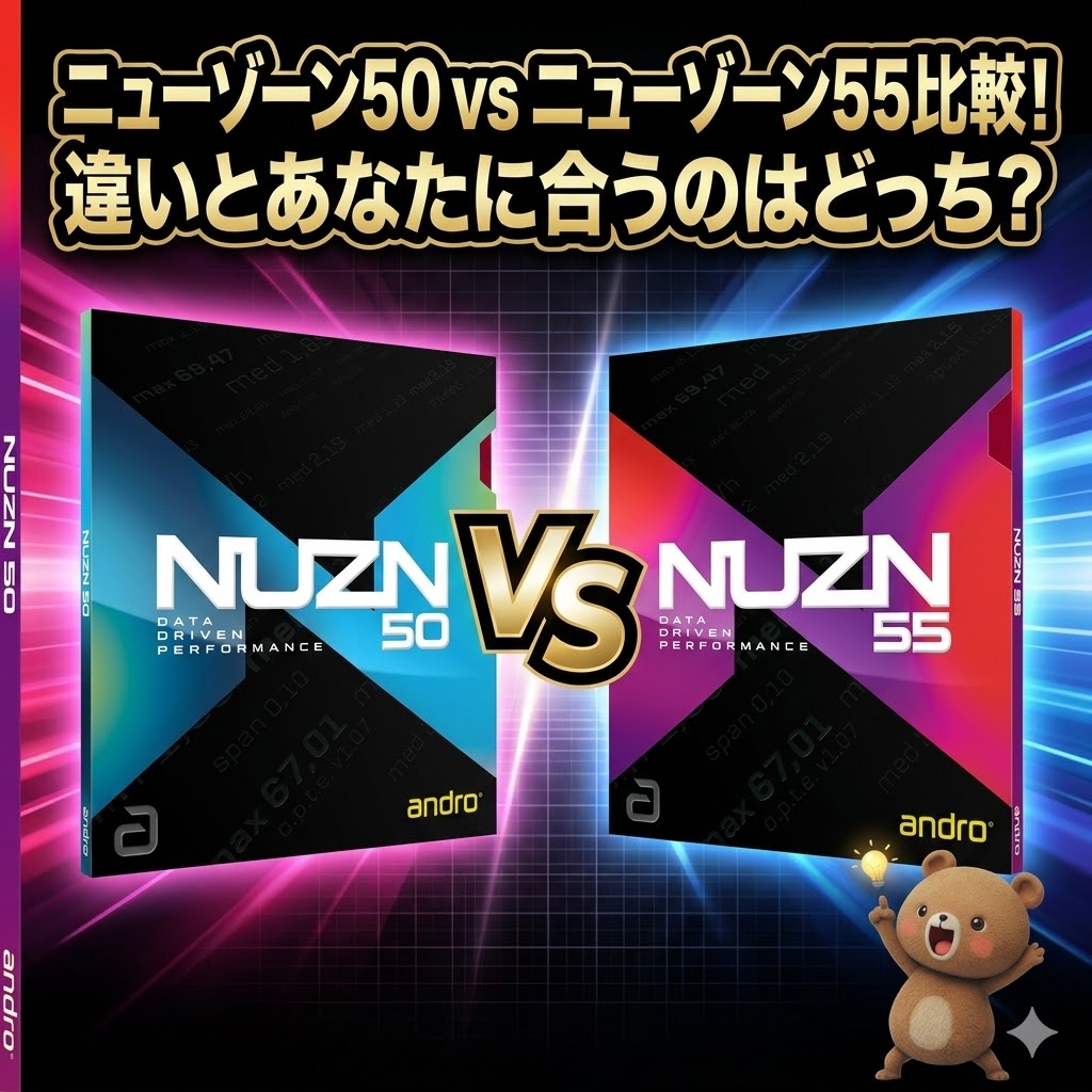 画像リンク先 Amazon 卓球大好き卓くまです! アンドロから登場したシリーズ「ニューゾーン(NUZON)」 粘着テンションの新しい選択肢として注目を集めているこの2枚 ニューゾーン50 vs ニューゾーン55を比較します! 結論!! 迷ったらニューゾーン50。 ... 用具・レビュー