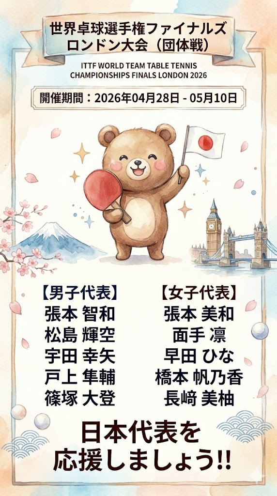 2026年世界卓球ロンドン大会(団体戦)日本代表が決定! まとめ