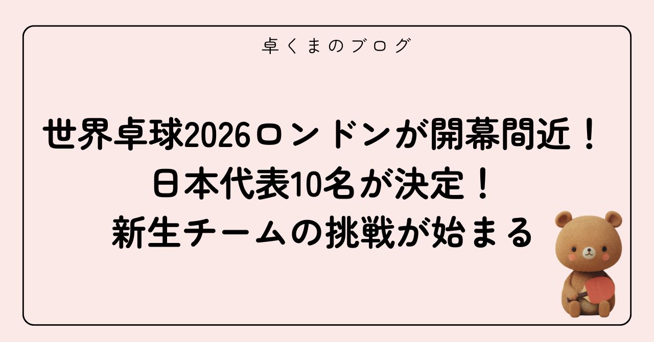 世界卓球2026ロンドンが開幕間近!日本代表10名が決定!