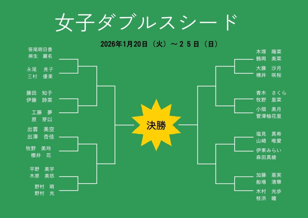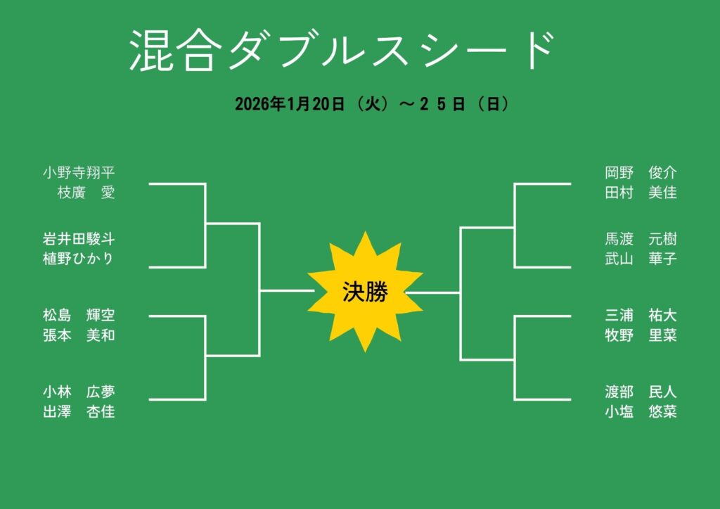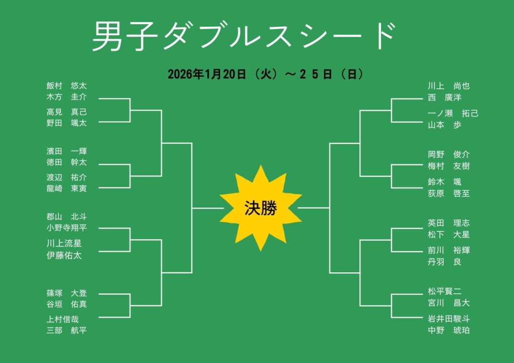 ダブルス、混合ダブルスの部のシード組み合わせが発表されました!