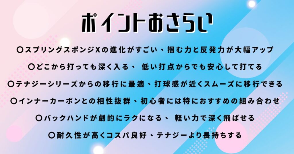テナジーよりもシートが強いんですが、多少フォームが崩れても、ラバーが助けてくれる感じがあります。