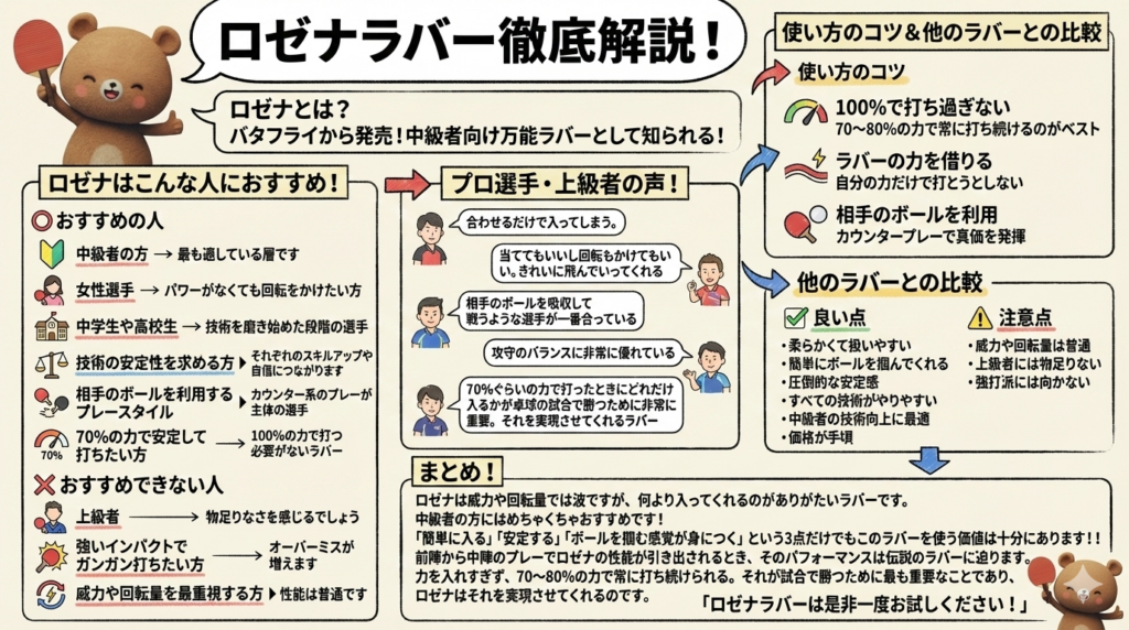前陣から中陣のプレーでロゼナの性能が引き出されるとき、そのパフォーマンスは伝説のラバーに迫ります。