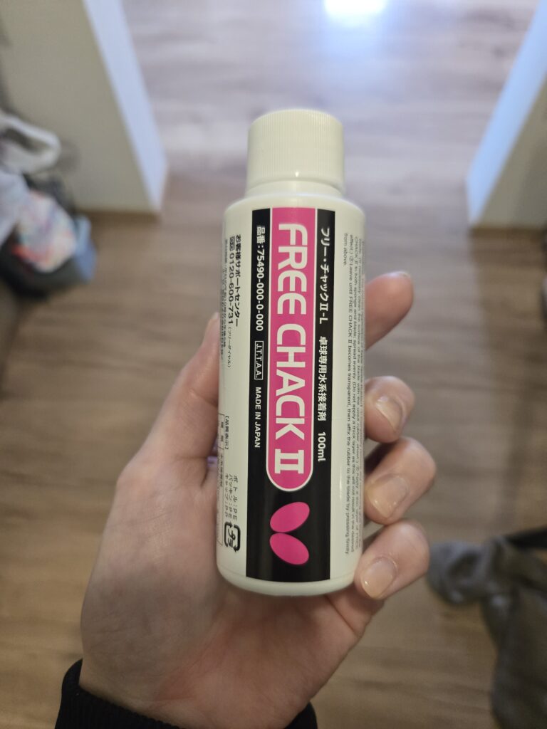 ラバーの接着剤は、乾かしてから貼るのが鉄則です。