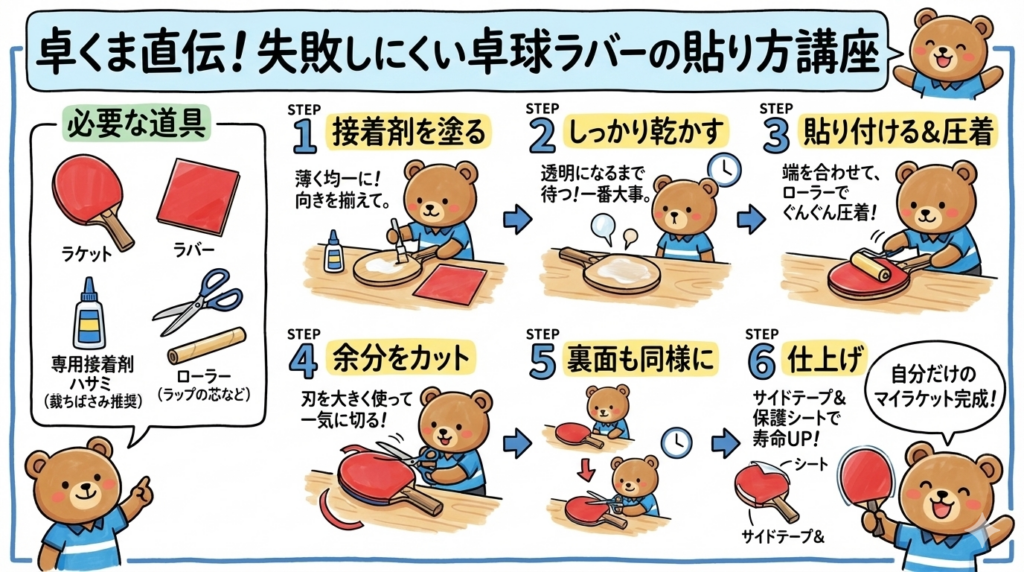 接着剤の塗り方やラバーの貼り付け方には、ちょっとしたコツがあります。