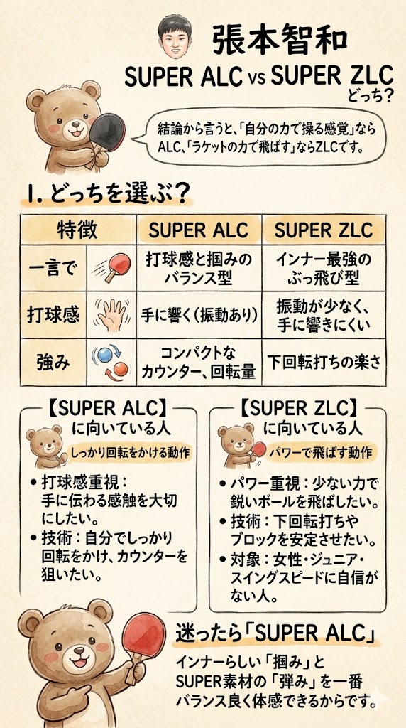 張本智和インナーフォースSUPER ALC vs 張本智和インナーフォースZLC 結論 どちらを選ぶべきか