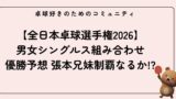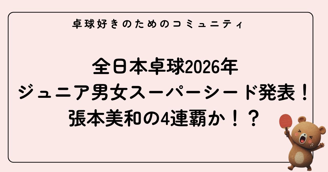 全日本卓球2026年ジュニア男女スーパーシード発表!張本美和の4連覇か!?