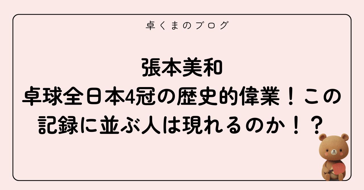 張本美和選手全日本選手権2026年で4冠を達成してしまいました!!