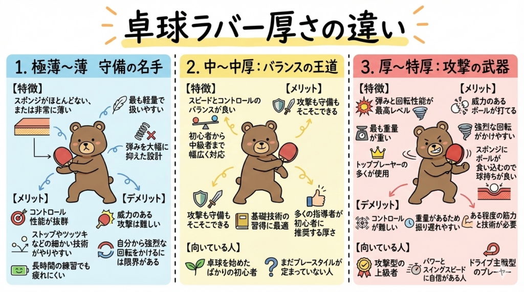 「ラバーの厚さって何?」 「どの厚さを選んだらいいの?」