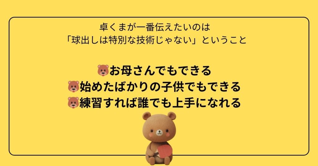 誰でもできる上手な球出しのコツを、卓くまが解説します!