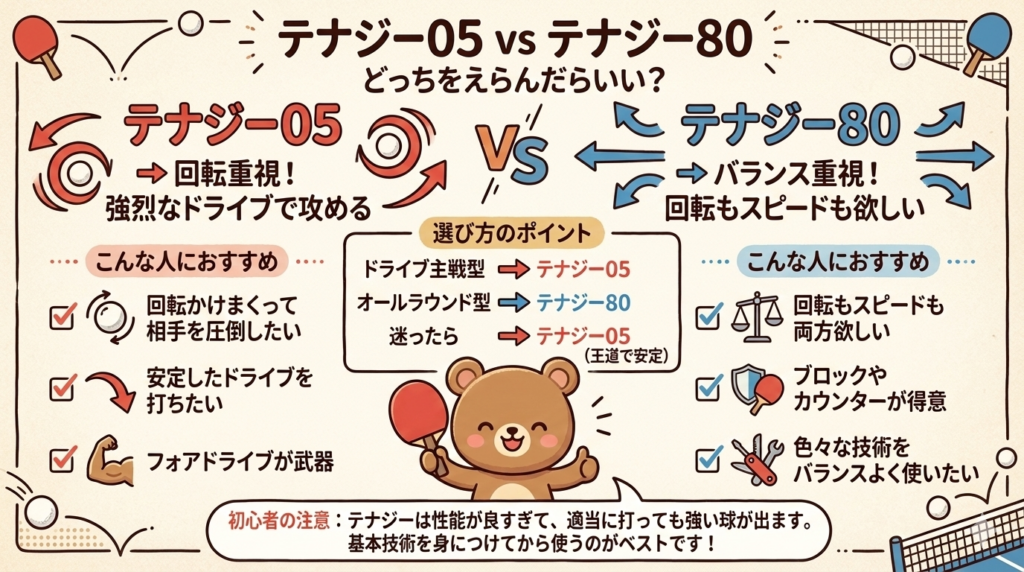 | テナジー05 | ドライブ主戦、回転重視 | 回転量、弧線の安定性 |