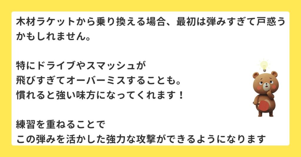 通常、カーボンラケットは弾みが強い分、球持ちが悪くなりがちです。