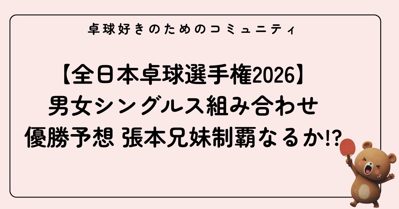 【全日本卓球選手権2026】男女シングルス組み合わせ・優勝予想 張本兄妹制覇なるか!?
