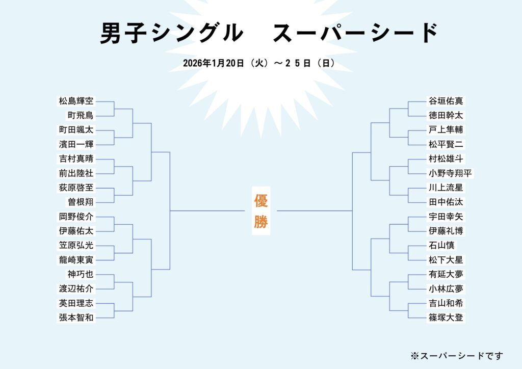 全日本卓球選手権2026男子シングルススーパーシード